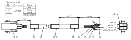 Кабель для подключения к мотору, 4pin, для двигателей без разъемов типоразмера 40/60/80, 1.5м